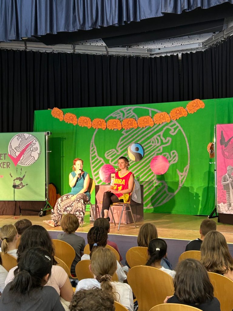 Herzlichen Dank an das Theater Sonni Maier für die mitreißende Show mit dem Titel „Fair sein – Wie geht das?“ Über Theaterszenen, Songs, kreative Mini-Vorträgen und interaktive Publikumsspiele haben unsere Schülerinnen und Schüler wichtige Gedankenanstöße zum Thema globale Gerechtigkeit bekommen, die wir als Fair Trade School gerne im Unterricht vertiefen. Wir danken auch dem Eine-Welt-Laden Mönchengladbach für die Organisation und dem Büro des Oberbürgermeisters für die Finanzierung. Gemeinsam wollen wir in Mönchengladbach als Fair Trade Town ein Zeichen für Gerechtigkeit, Nachhaltigkeit und Solidarität setzen!