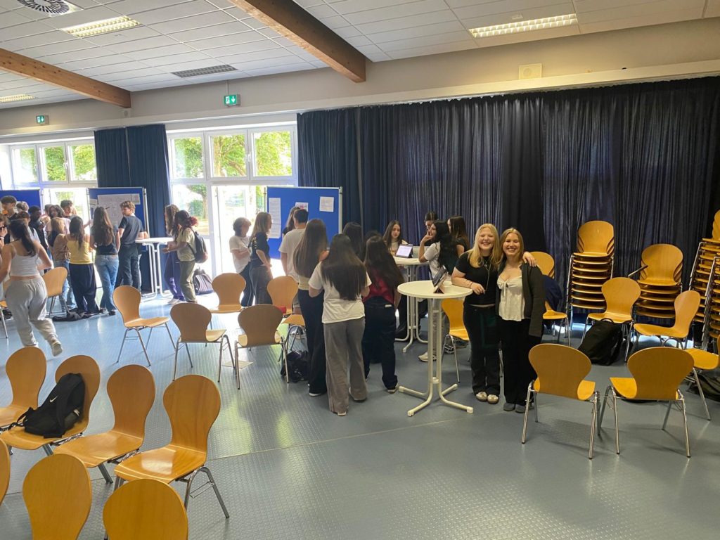 Letzte Woche hatte der Wirtschaft/Englisch-Kurs der 10. Klasse ganz besonderen Besuch: Schülerinnen der Drayton Manor High School (DMHS) aus London waren bei uns zu Gast! Gemeinsam mit unseren Gästen warfen wir einen Blick auf unser aktuelles Projekt „Design a Product/Service for GymGa ‘21“ – spannende Ideen, kreative Konzepte und echtes Teamwork standen im Mittelpunkt. Die DMHS-Schülerinnen konnten die Projekte im Rahmen eines Gallery Walks kennenlernen und sich so einen Eindruck über die vielfältigen Produkte und Ideen des Kurses für eine zeitgemäße Lern- und Schulkultur verschaffen und für ihren Favoriten abstimmen.