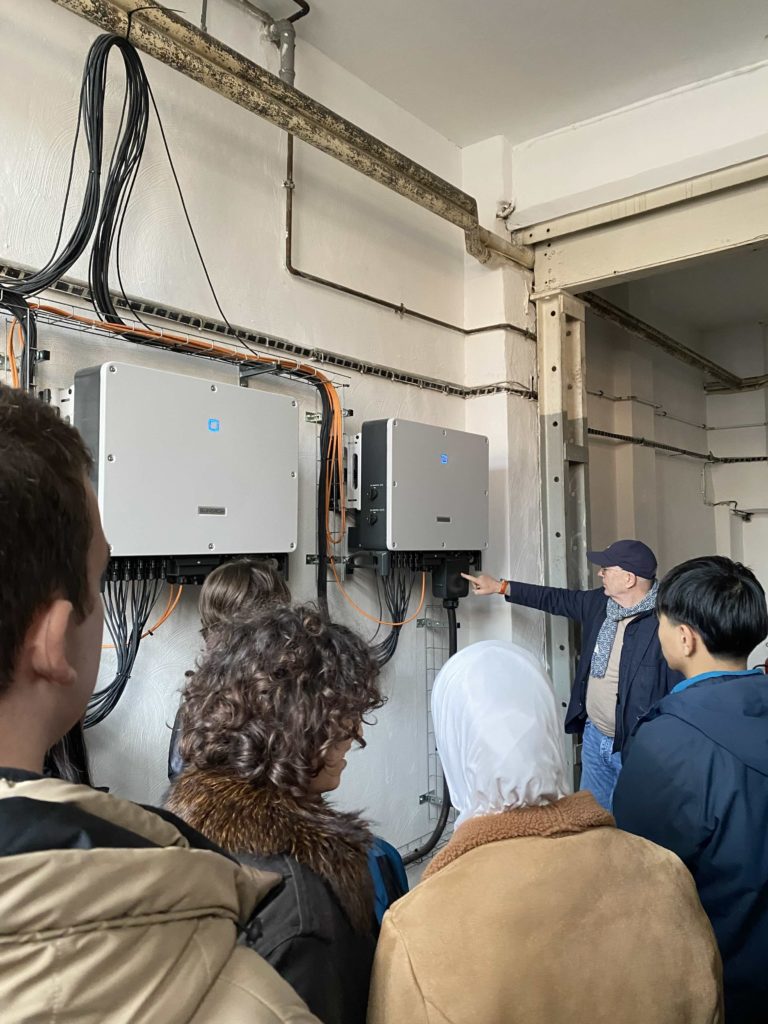 Zum Schluss durften wir die Schalt- und Anschlussräume der Hego Höfe besichtigen. Dort wurden uns die Funktion eines Wechselrichters, das Monitoring-System sowie die Abläufe hinter der Einspeisung ins Stromnetz erklärt.