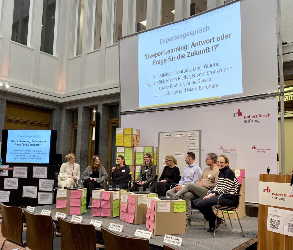 Ein besonderer Höhepunkt war der Beitrag von zwei ehemaligen Schülerinnen des GymGa’s, die aus ihrer Perspektive berichteten, wie sie Deeper Learning im Schulalltag erlebt haben. Im Expertenpanel beantworteten sie Fragen zur Schülersicht auf selbstgesteuertes und projektorientiertes Lernen und gaben wertvolle Einblicke in die Wirkung dieser Lernformate.
