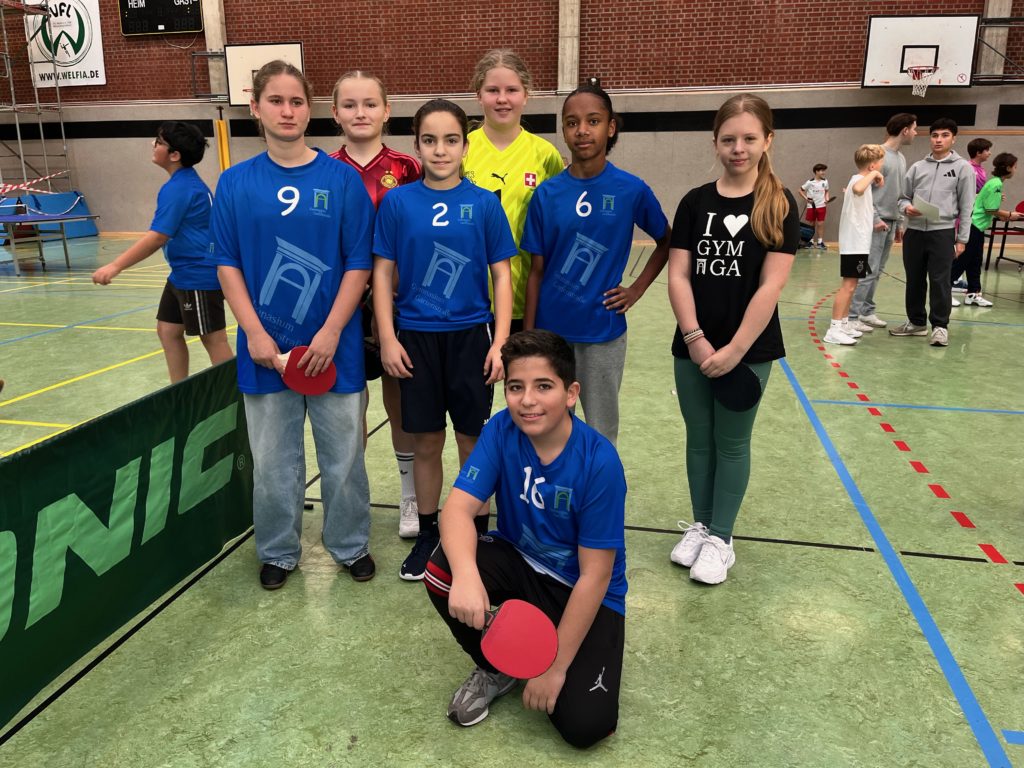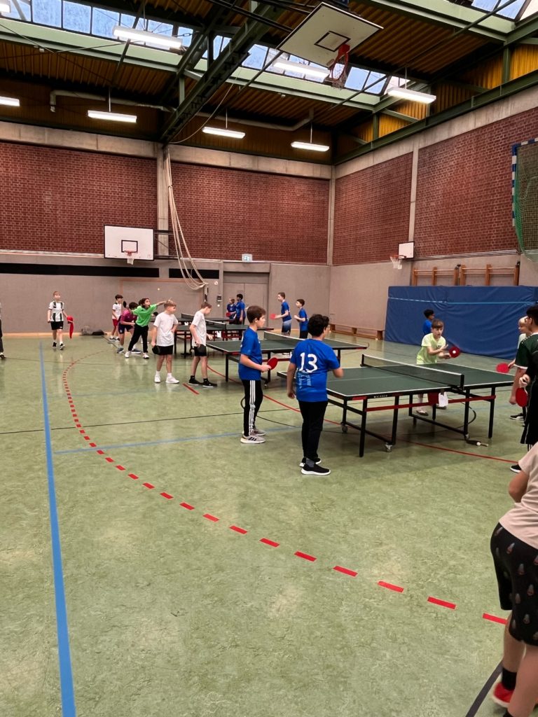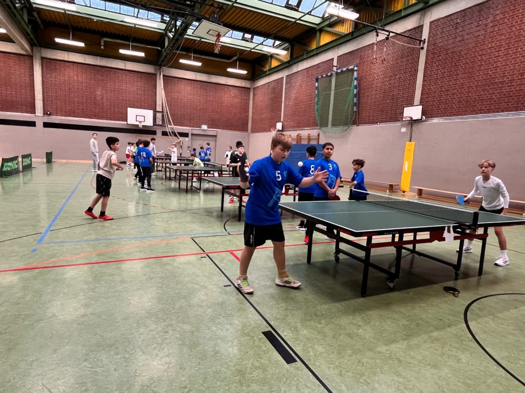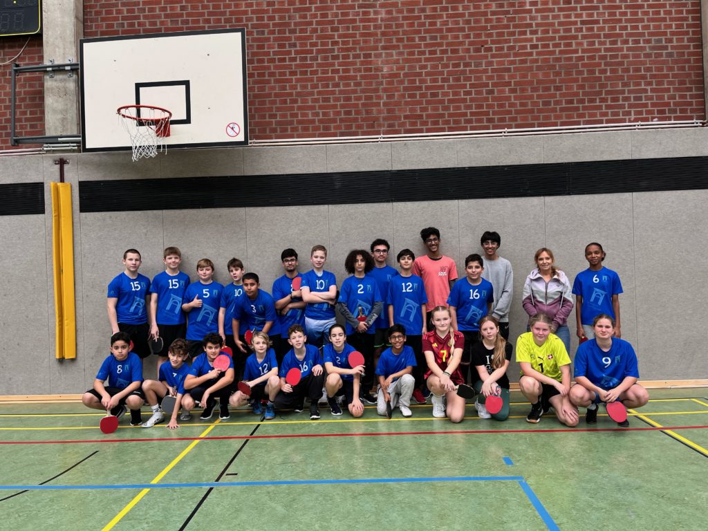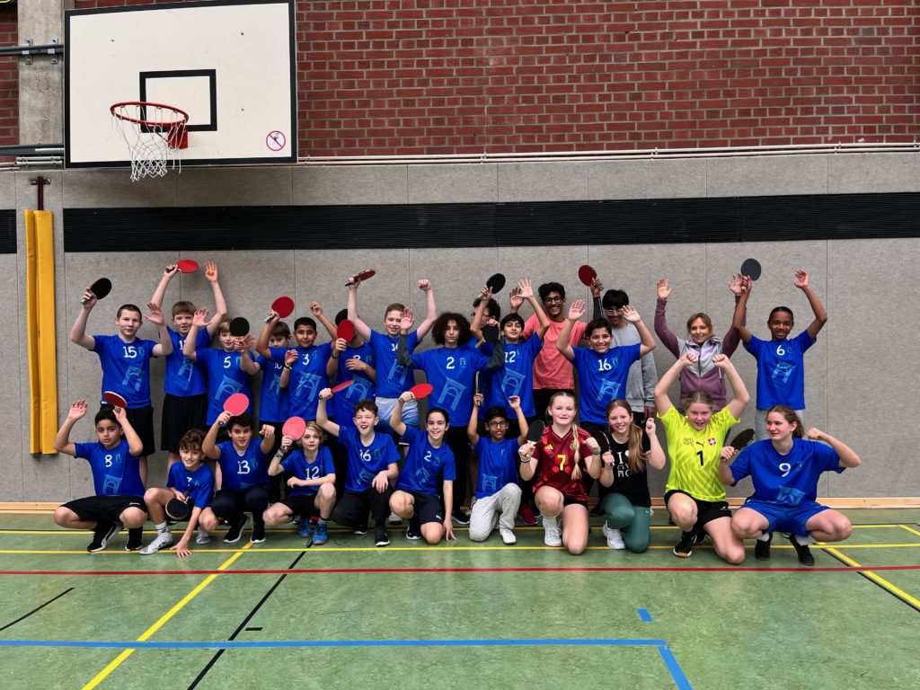 Unsere Schule war bei den diesjährigen Stadtmeisterschaften im Tischtennis in der Halle des Math.-Nat.-Gymnasiums mit vier Teams vertreten: drei Jungenmannschaften und ein Mädchenteam. Mit viel Einsatz und Spielfreude traten wir gegen Teams anderer Schulen an und konnten tolle Platzierungen erreichen. Für einen Titel hat es diesmal nicht gerreicht, aber wir geben uns auch gerne mit einem 2ten (Mächen) und einem 3ten Platz (Jungen U14) zufrieden. Wir sind stolz auf alle Spielerinnen und Spieler – der Spaß und die Freude standen im Vordergrund!